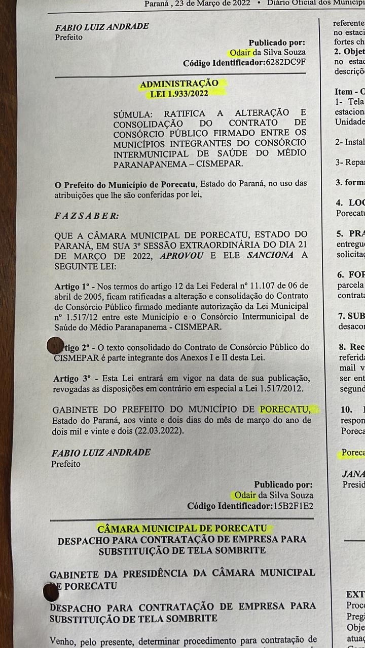 PUBLICAÇÃO - DECRETO Nº 021-2022 - ALTERA O DECRETO Nº 20-2022